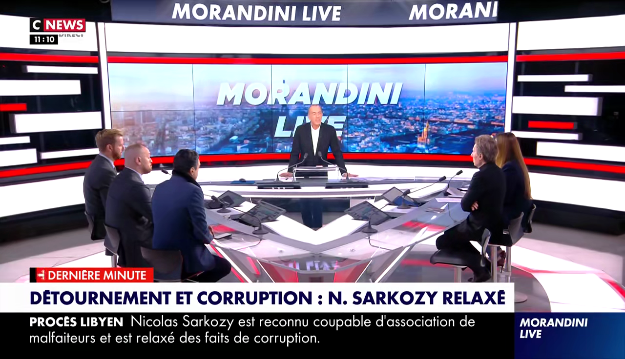 Sur CNews, fait rarissime, Morandini fait carrément changer le bandeau en direct quand il constate que celui-ci insiste sur la condamnation : "C'est dommage (...) on va retenir juste qu'il est coupable d'association de malfaiteurs et on va oublier qu'il est relaxé pour recel de détournements de fonds publics et pour corruption passive alors que c'est le plus important, donc on va changer le bandeau parce que j'aimerais bien qu'on soit sur l'essentiel de ce dossier"