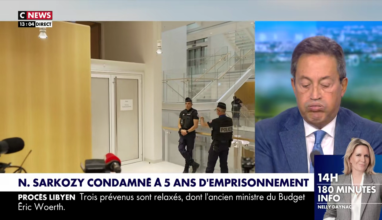 Quand on annonce dans l'oreillette à Sonia Mabrouk que Nicolas Sarkozy est condamné à cinq ans de prison ferme avec mandat de dépôt à effet différé (ce qui signifie qu'il va être incarcéré), la journaliste de CNews croit avoir mal entendu…