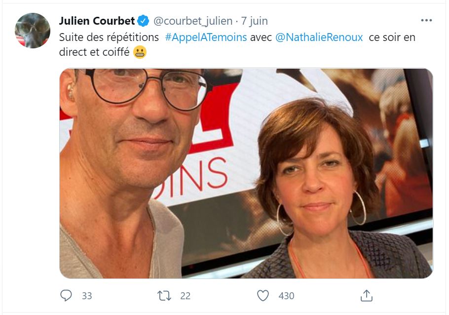 Le tout, en direct. Car c’est important le direct, tout peut arriver. N’est-ce pas Julien ? "Je rappelle que nous sommes en direct, il est 21 h 37…"