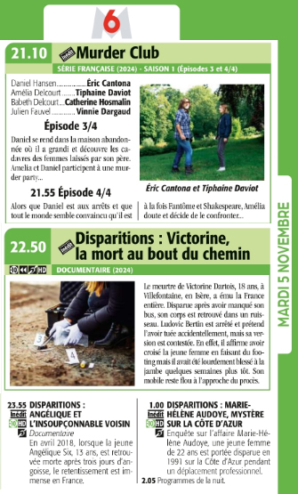 (tout est dans le titre), suivie de trois documentaires consacrés à des disparitions de jeunes femmes. Du fait divers en continu, de 21h à 2h du matin ? Chouette.