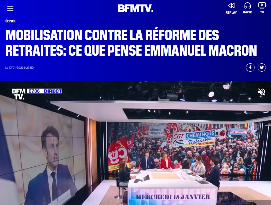 cette fois-ci : "Il répète à ses interlocuteurs que le dossier des retraites était au cœur de son programme et qu'il a donc été approuvé par les Français lors de l'élection présidentielle."