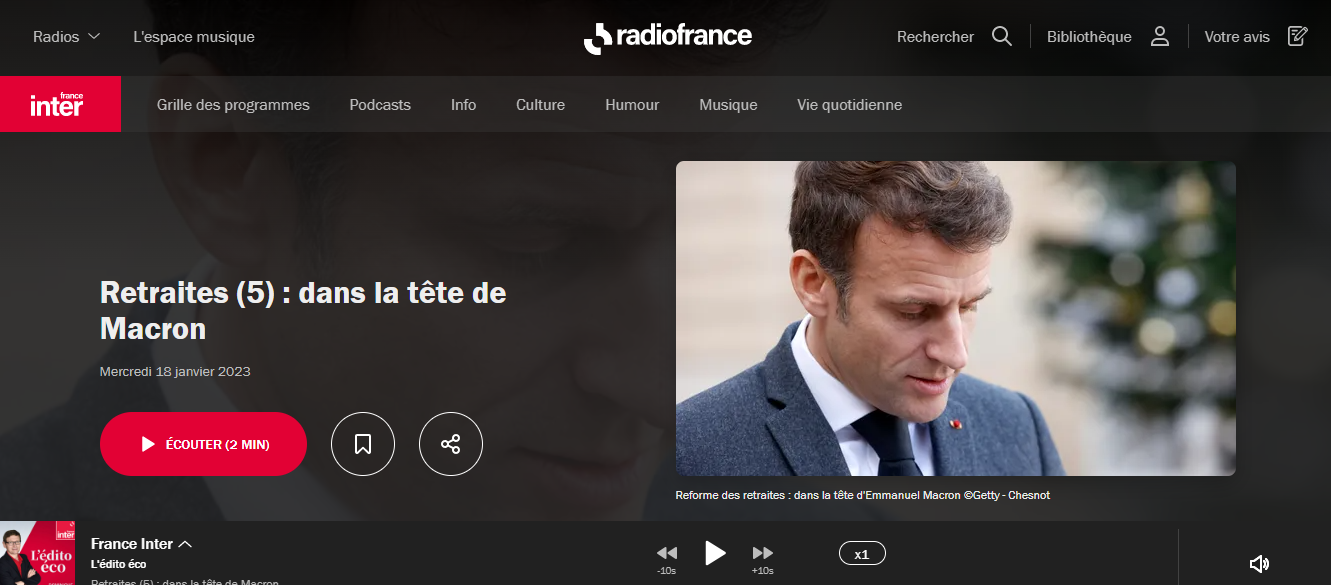 est là pour relayer la parole du pouvoir en off. Il n'est pas le seul : le lendemain matin, 18 janvier, le billet de Dominique Seux sur France Inter est lui aussi dédié au monologue interne du président, et en détaille le "raisonnement"