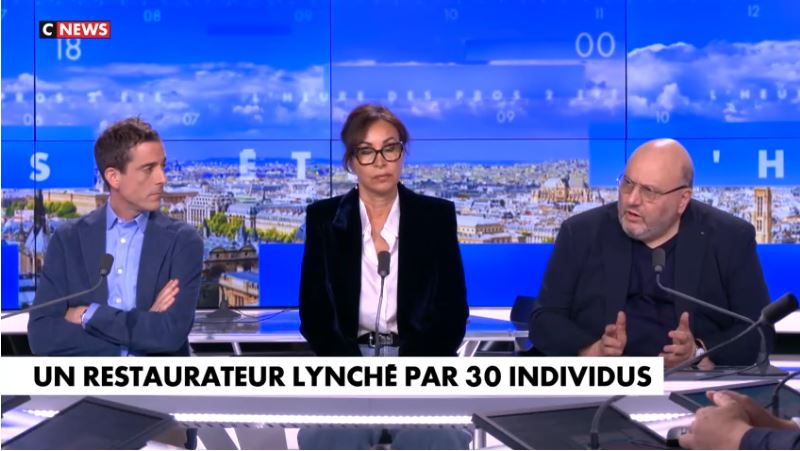 Pour faire bonne mesure, le bandeau qui s'affiche à l'écran pendant toute la discussion indique : "un restaurateur lynché par 30 individus"
