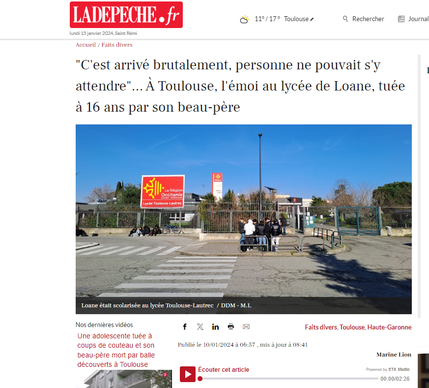 Est-ce l'âge des victimes ? Thomas, tué à Crépol dans la nuit du 18 au 19 novembre 2023, avait 16 ans. Loane, jeune fille tuée par son beau-père à Toulouse le 5 janvier dernier, 16 ans aussi. Et pourtant... Le recensement de ces deux sujets sur dix des principaux sites d'information (le Parisien, Ouest-France,