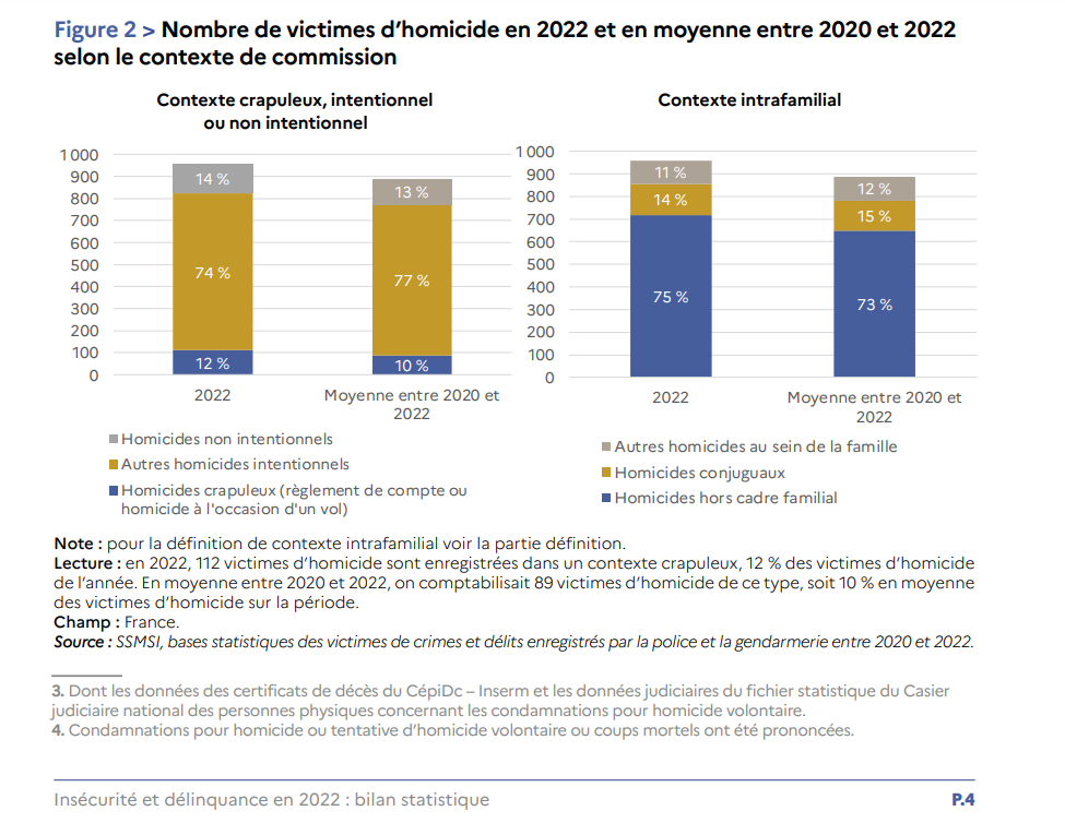 Rappelons que le crime commis à Crépol fait partie des homicides les plus courants. Deux tiers des homicides ne sont ni crapuleux, ni commis dans un cadre familial (comme le confirment les chiffres d'Interstats, le service statistique du ministère de l'Intérieur). Soit, pour 2022, 605 homicides de ce type contre 112 crapuleux et 242 intrafamiliaux.