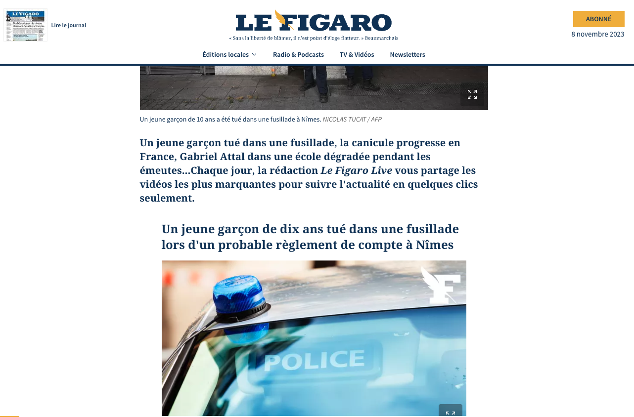 chez Midi libre dès le matin du 22 août pour le drame de Nîmes. Ou en découvrant le titre d'un sujet diffusé au 13 Heures de TF1, le 7 octobre : "«Un règlement de comptes sur le Vieux-Port, c'est dingue» : Le choc à Marseille après une fusillade".