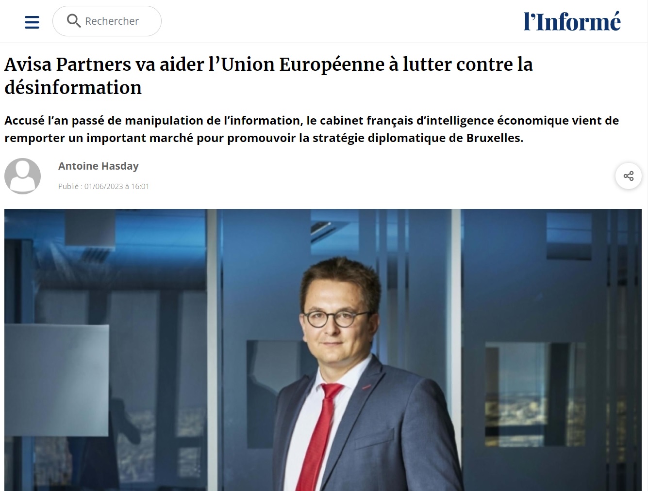 Si les responsables de la Commission européenne souhaitent lire nos enquêtes afin de s'informer sur les candidats avant d'attribuer le prochain marché destiné à lutter contre la désinformation, ASI se tient à leur disposition. À moins, bien sûr, que la Commission ne sache parfaitement ce qu'elle fait : après tout, Avisa partners va aussi être chargée, à travers ce contrat, de "faciliter la promotion des intérêts et des valeurs de l'UE ainsi que la promotion des intérêts offensifs de l'UE". Ce que la société sait indéniablement faire… mais à quel prix.