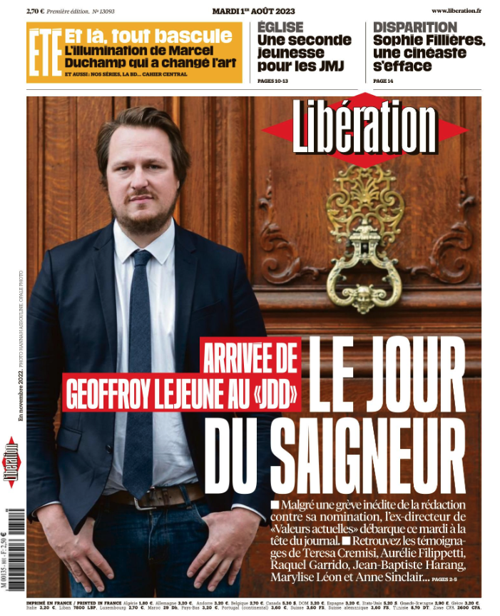 Cette semaine, la presse française a perdu le JDD indépendant. Le 1er août, "jour du saigneur" comme l'a titré Libération, Geoffroy Lejeune a pris ses fonctions de fossoyeur au Journal du Dimanche, dans une rédaction presque vide, condamnée à choisir entre rester sous les ordres de celui qui ne peut pas promettre que le futur journal ne sera ni raciste, ni sexiste, ni homophobe, ou partir.