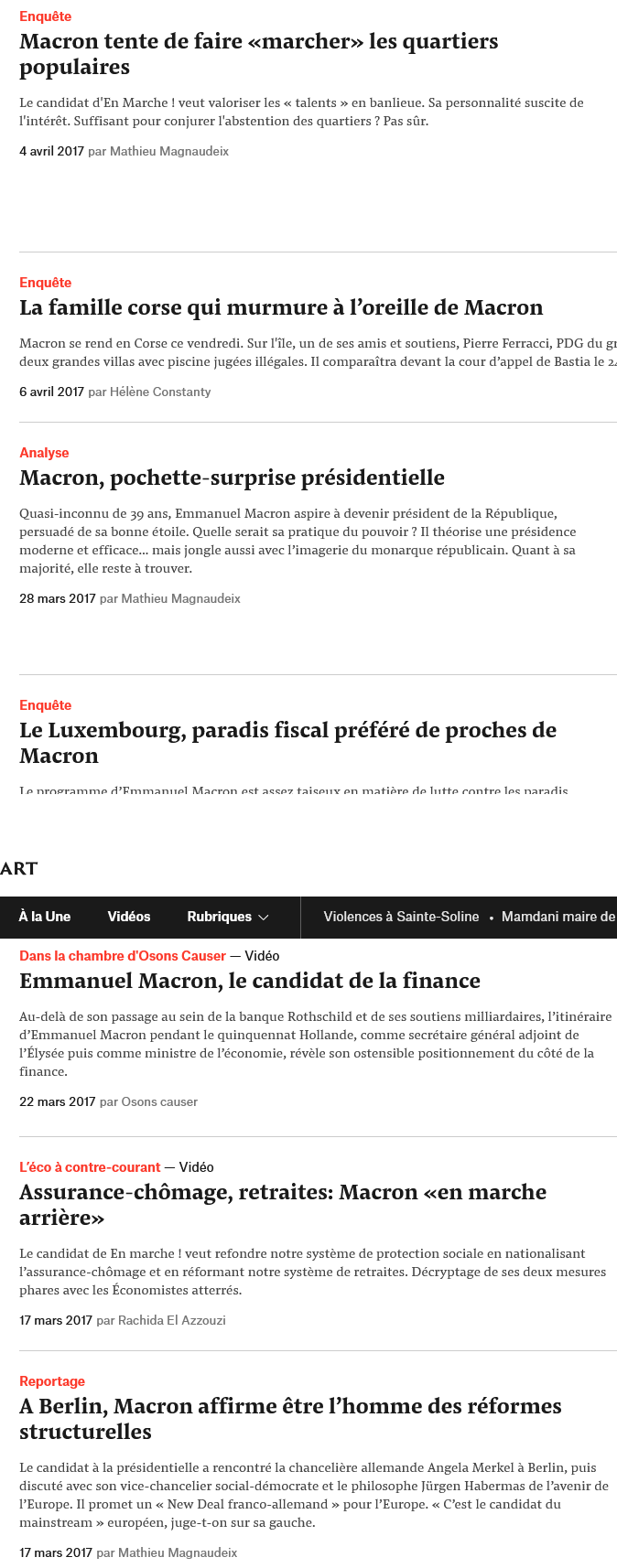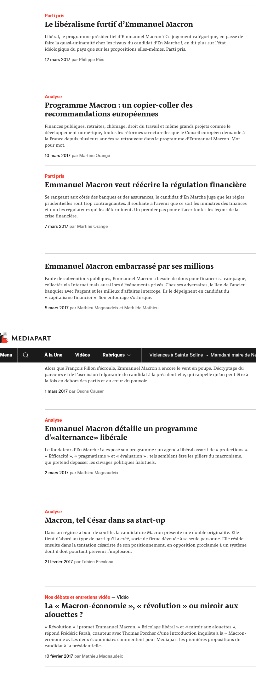 La vidéo de son interview, c'est un exemple de mauvais journalisme. On a connu les journaliste de médiapart plus incisif. Ici, ils n'étaient clairement pas à la hauteur et ont laissé macron dérouler sa rhétorique, comme des lapins de deux semaines (ou des complices).