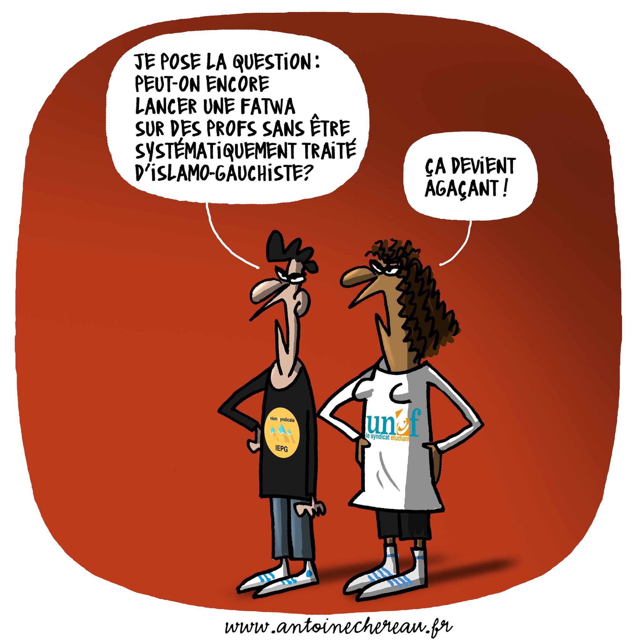 Mediapart publie un récit détaillé du conflit à l'IEP Grenoble. Où on constate que nos deux professeurs cochent toutes les cases du bingo réac anti-islam dans sa toute dernière version. Ces gens hystérisent le débat, calomnient et harcèlent les personnes avec lesquelles elles ne sont pas d'accord, tout en étalant leur incompétence, font appel aux média réactionnaires dès que possible...