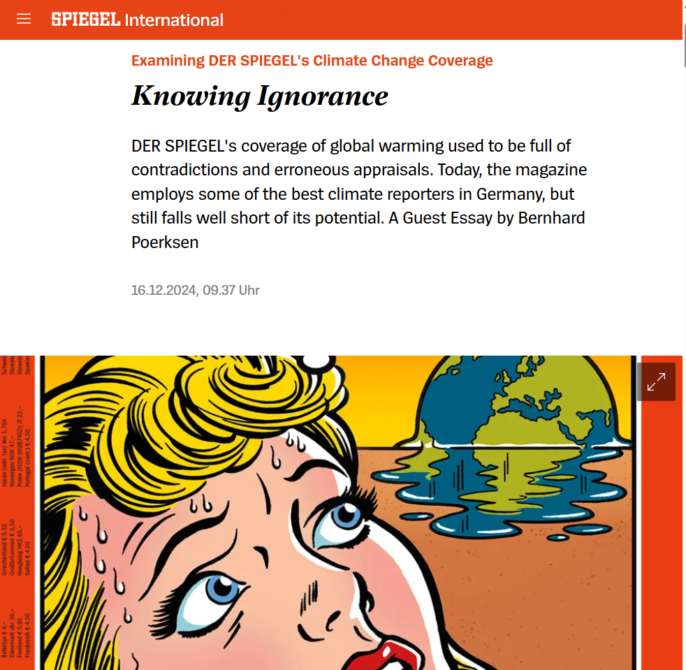 En décembre, l'universitaire remet le couvert avec la couverture du climat. Et cette fois-ci, il se focalise sur le Spiegel, en remontant les décennies avec l'aide des archivistes du magazine. Il constate que jusqu'à 2019, Der Spiegel couvrait le dérèglement climatique sans aucune ligne directrice, alternant entre, d'une part, des couvertures catastrophistes, par exemple avec la cathédrale de Cologne sous l'eau dès 1986. Mais aussi avec des contenus climatosceptiques, relativistes ou techno-solutionnistes à l'initiative d'un nombre (réduit) de chefs de services du magazine – telle une interview d'un cadre du géant de l'énergie allemand RWE contestant la réalité du dérèglement climatique et attaquant le travail des scientifiques du Giec.