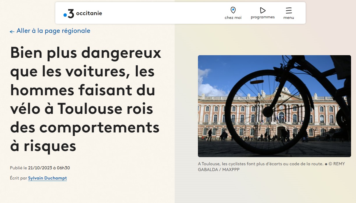 Une étude de la MMA commanditée à OpinionWay a fait le tour des médias en octobre : les cyclistes et les piétons multiplient les comportements à risque (qui incluent le fait de regarder son téléphone en traversant) aux intersections des grandes villes. "Ces observations démontrent concrètement que les comportements à risque des usagers sont en cause dans la hausse des accidents corporels et mortels des usagers vulnérables en ville. En effet, selon le principe de la pyramide des risques de Bird (ci-contre), plus le nombre de comportements à risque est important, plus la probabilité d’avoir un accident grave est élevée. C’est donc à tous les usagers de la route de respecter le code de la route au quotidien pour agir sur le risque et ainsi diminuer les accidents en ville", en conclut la MMA dans son communiqué de presse. Bien des médias en reprennent la teneur, sans questionner ni contextualiser cette étude. Jusqu'à ce titre de France 3 Occitanie "Bien plus dangereux que les voitures, les hommes faisant du vélo à Toulouse rois des comportements à risques", vivement critiqué par le vidéaste-cycliste de la chaîne Altis Play.