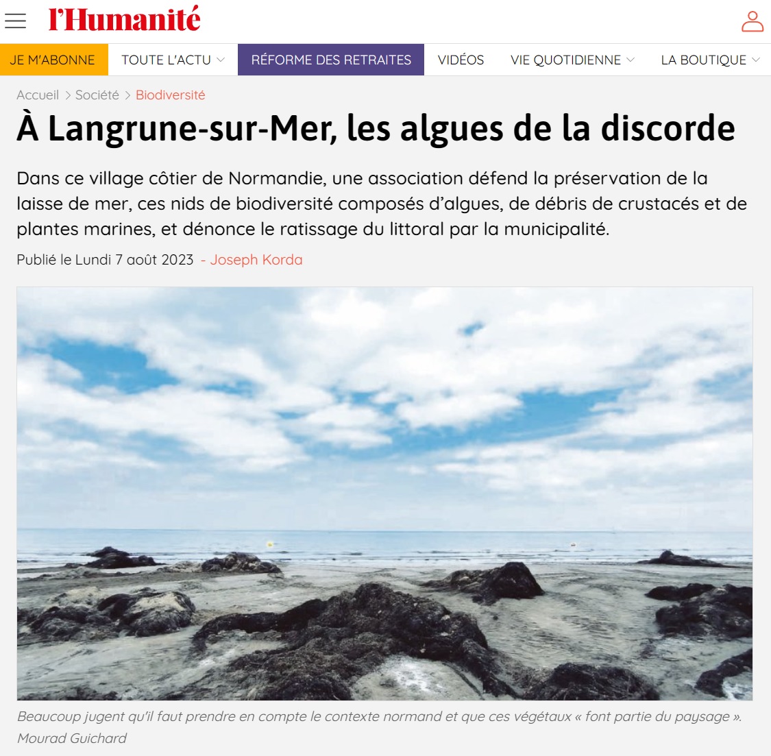 Tout commence par un journaliste indépendant en vacances en Normandie, Mourad Guichard. Sa curiosité est attisée par un post Instagram d'une association écologique locale de Langrune-sur-Mer, Land Growan au pied du mur, qui critique le ratissage de la plage, malgré leurs actions de sensibilisation des élu·es et institutions locales "pour expliquer l'importance de la laisse de mer et de la biodiversité du littoral". La laisse de mer, ce sont ces amas composés d'algues, de coquillages et de crustacés présents sur les plages, qui servent "de gîte et de couverts à de nombreuses espèces". Résultat après avoir interrogé l'association, des commerçant·es et les élus locaux, Guichard publie un article dans l'Humanité, signé de son pseudonyme Joseph Korda – pas une figure communiste comme je l'indique de manière erronée dans l'émission, mais un assemblage du prénom de son premier fils et du nom du photographe Alberto Korda rencontré en 1992 par Guichard à la Fête de l'Humanité.