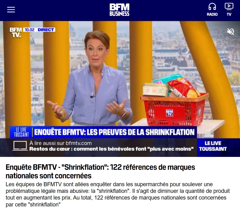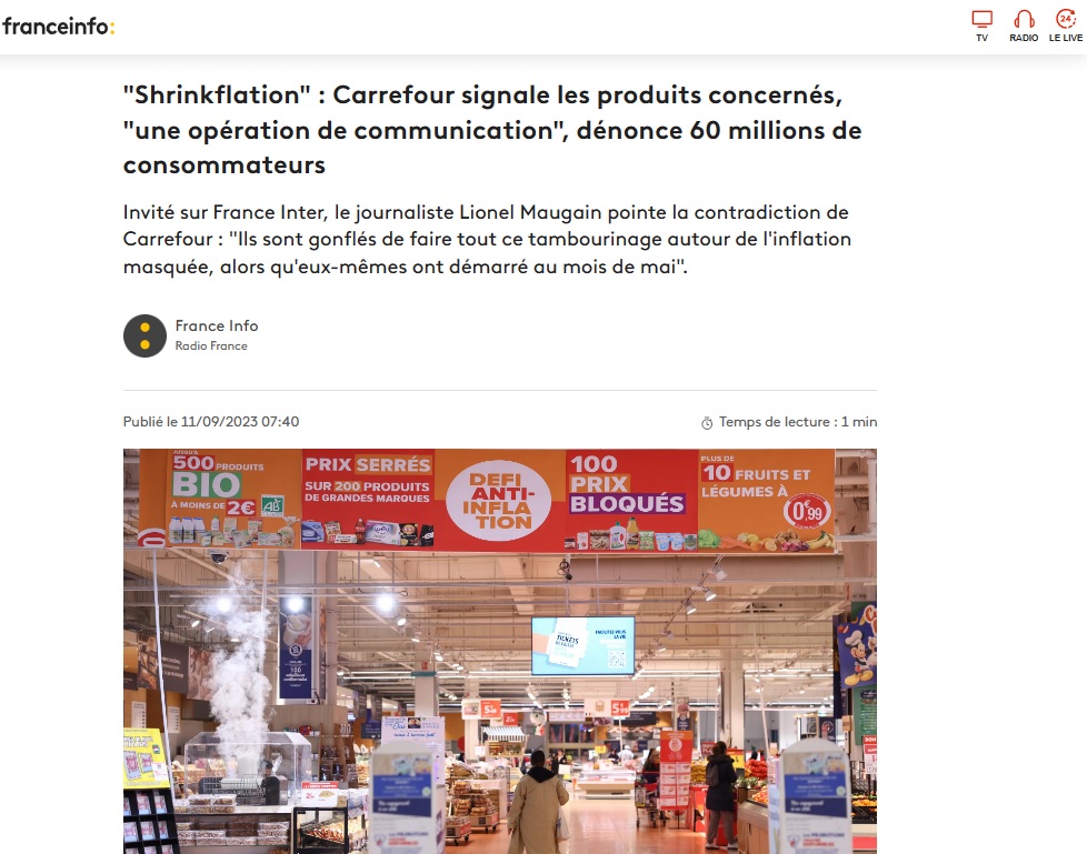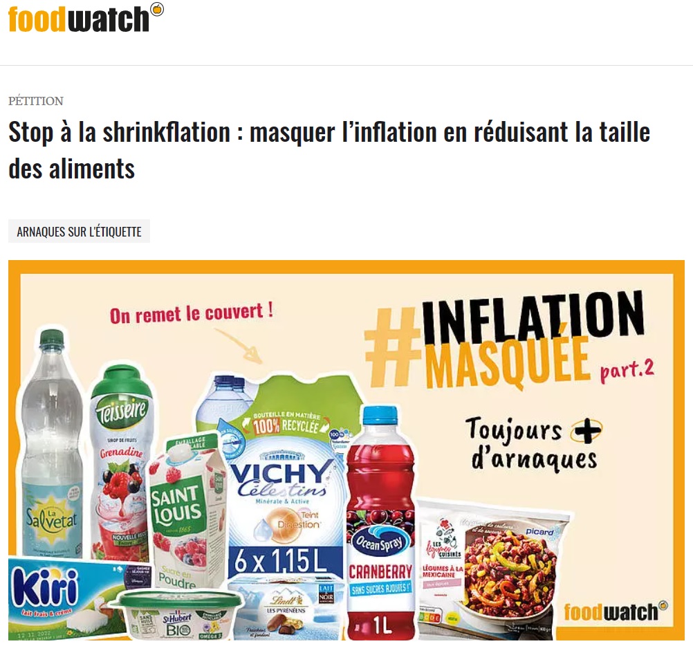 Rebelote en 2023, lorsque la campagne menée par Foodwatch avec un soutien médiatique d'ampleur rencontre un écho politique, via Bruno Le Maire (ou la députée LFI Mathilde Panot) sur France 2, qui est d'ailleurs la seule chaîne à avoir choisi de masquer les marques concernées. Pour la plus grande satisfaction de Foodwatch. En ce mois de septembre 2023, un média se distingue : BFMTV, qui a produit une enquête approfondie à ce propos, en particulier en dévoilant le 5 septembre une liste issue de la grande distribution, de 122 références"dont les quantités ont baissé alors que les prix ont augmenté".