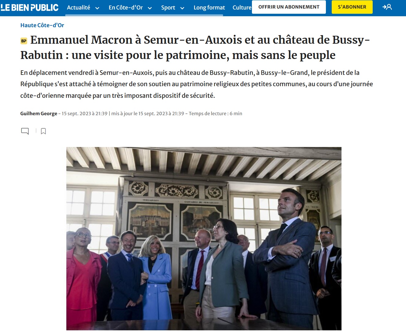 Tout part d'un témoignage personnel publié sur la plateforme Reddit, dénonçant une commune "bouclée et quasiment privatisée" lors de la visite d'Emmanuel Macron venu promouvoir son plan de préservation du patrimoine religieux à Semur-en-Auxois (Côte-d'Or). Information tout à fait exacte, à lire France 3 et France Bleu. Ou l'édito sévère du quotidien régional le Bien Public, titré "une visite pour le patrimoine, mais sans le peuple" et racontant comment "les services de sécurité élyséens ont tout fait pour éloigner le président de «son» peuple". Peu avant la venue du président, le sénateur LR de la Côte-d'Or Alain Houpert avait annoncé qu'il ne s'y rendrait pas : "Pour son défilé, la ville est interdite à la circulation, y compris de ses habitants. Face à cette image de la démocratie, je ne serai pas à ce rendez-vous qui n'a plus rien de républicain." Et la CGT archéologie Bourgogne, représentant le personnel de l'Institut national de recherches archéologiques préventives, s'était insurgée elle aussi d'un "village Potemkine", jusqu'à boucler le chantier et cacher artificiellement des fouilles archéologiques en cours dans la commune.