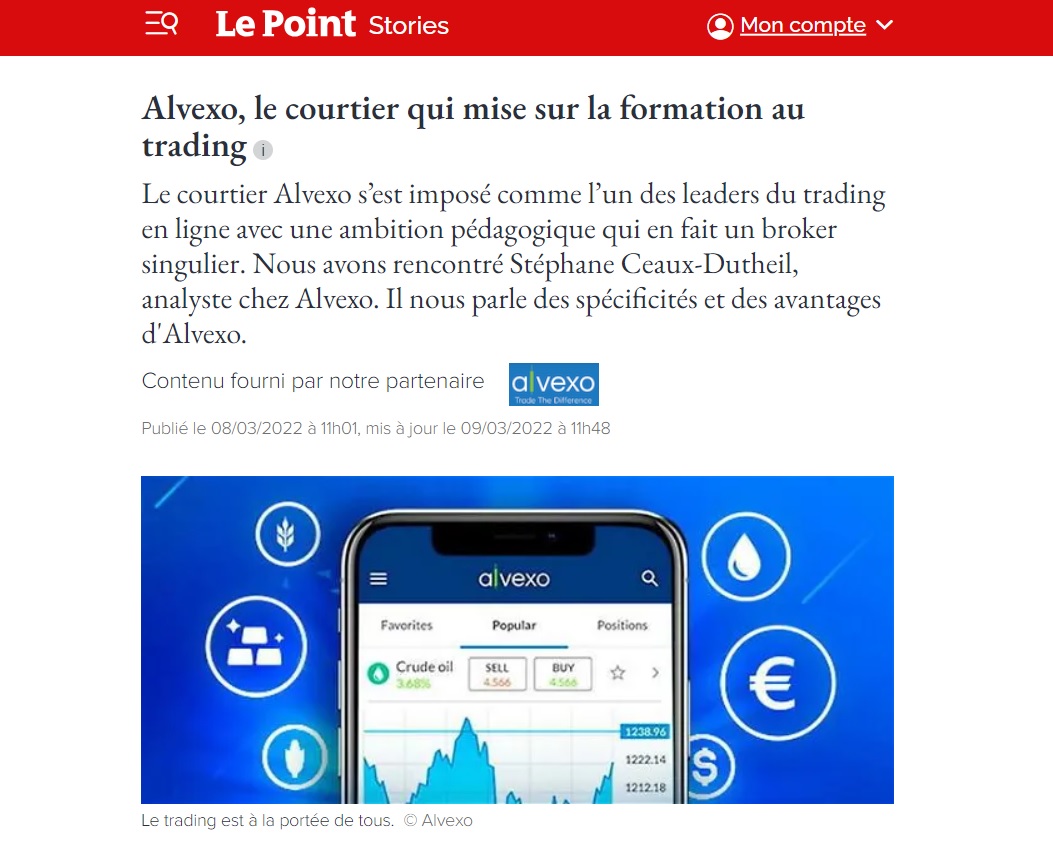 L'histoire de la plateforme de trading d'options sur des cryptomonnaies, devises et actions (des paris à la hausse ou à la baisse sur leurs valeurs, souvent avec effet de levier) Alvexo est similaire à celle de bien d'autres homologues basées dans les petits paradis fiscaux européens que sont Malte et Chypre, hors d'accès du régulateur financier français. Sauf qu'Alvexo a ouvert une succursale française, ce qui a permis à l'Autorité des marchés financiers (AMF) de se saisir de son cas : un jugement est attendu prochainement, et il sera très probablement défavorable à la plateforme faisant par ailleurs l'objet de nombreuses plaintes en justice d'épargnant·es ayant perdu tous leurs investissements. Alvexo était au cœur de "l'affaire Jean-Pierre Pernaut", qui promettait de dévoiler ses conseils en investissement, soit investir via Alvexo, sauf que tout était bidon, jusqu'à un faux article du JDD, affaire révélée par Numerama en 2020. Mais Alvexo a aussi diffusé, ces dernières années, plusieurs publireportages – flatteurs, forcément – dans les médias le Point et Capital, un classique des arnaques à l'investissement. Le magazine Capital a d'ailleurs supprimé en catimini, entre lundi 9 et mardi 10 octobre, les trois textes promotionnels de son site.