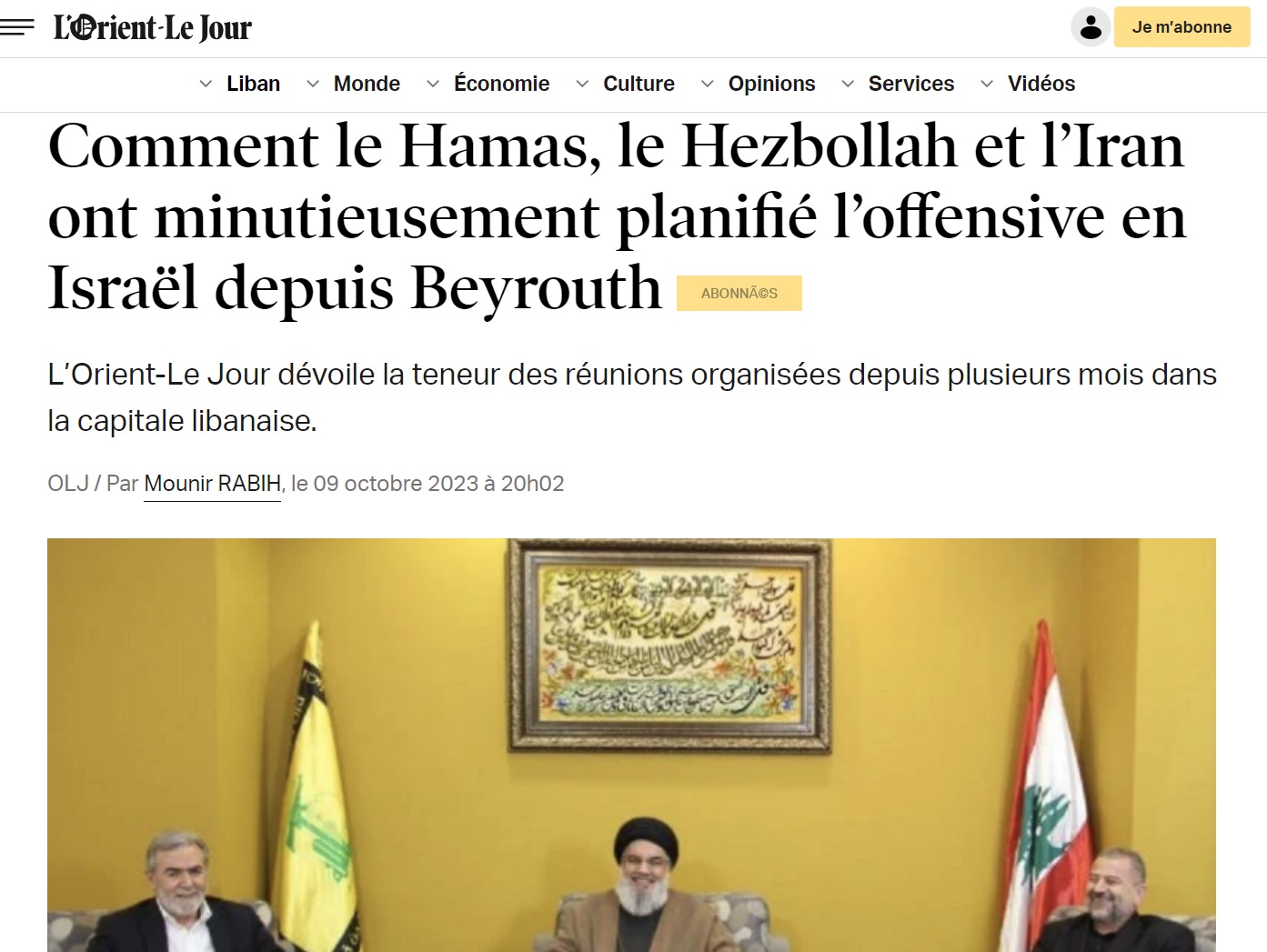 "Le Corps des gardiens de la révolution islamique a donné son feu vert définitif lundi dernier, lors d'une réunion à Beyrouth." L'accusation du Wall Street Journal (ici traduite par l'Opinion), ce dimanche 8 octobre, est lourde d'implications. Le plus prestigieux des journaux de la galaxie Murdoch affirme en effet que l'Iran ne s'est pas contenté de son traditionnel soutien matériel et financier au Hamas, mais aurait été directement impliqué dans l'offensive, et ce jusqu'à la présence du ministre des Affaires étrangères lors de réunions de planification opérationnelle avec le Hamas. Les fermes démentis officiels pleuvent immédiatement en provenance d'Israël et des États-Unis et d'autres journalistes mettent rapidement en cause la crédibilité de ce récit médiatique. "Pourquoi le ministre des Affaires étrangères iranien serait-il présent à une réunion pour discuter de l'opération militaire ?", demande le journaliste d'Al-Jazeera Ali Hashem – un des correspondants de The Economist au Moyen-Orient, Gregg Carlstrom, pose la même question.