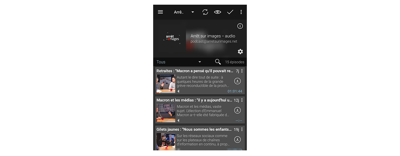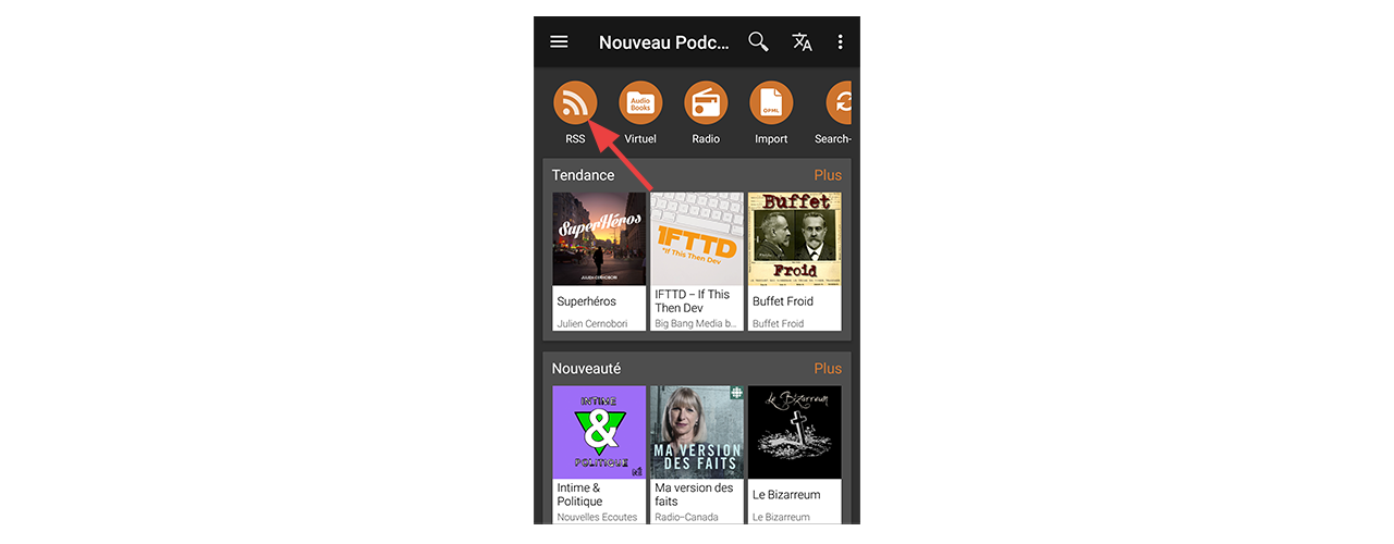 Prenons l'exemple de l'application Podcast & Radio Addict disponible sur Android. La marche à suivre devrait être sensiblement identique sur les autres applications.
